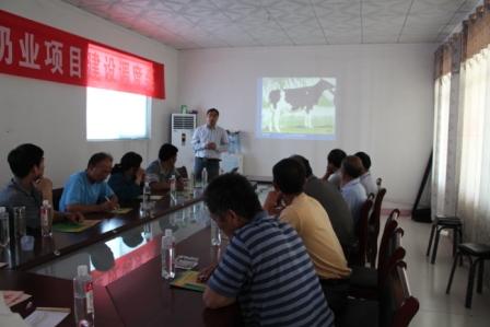 ??????? 5月26日上午,山東美事達農(nóng)牧科技有限公司在歷城唐王組織了一場奶牛養(yǎng)殖技術(shù)座談會,唐王奶牛養(yǎng)殖小區(qū)十幾個養(yǎng)殖戶均參加了會議。會上楊趙軍總經(jīng)理就奶牛日常飼養(yǎng)管理及TMR飼喂要點和注意事項等議題做了深入淺出的講解,使與會者都受益匪淺,獲得了一致好評。會議由趙憲華經(jīng)理主持,公司技術(shù)經(jīng)理同海妮出席了座談會。