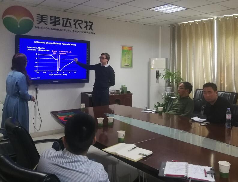 ? ? Frederik博士本次交流的主題為《奶牛圍產期營養與管理》,向我們展示了荷蘭最新的奶牛圍產期營養與管理技術。Frederik博士講解淺顯易懂,讓參會人員理解充分,保證了日后的服務中能更好地運用。
