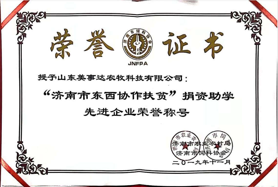 熱烈祝賀我公司被授予“濟南市東西協作扶貧”捐資助學先進企業榮譽稱號