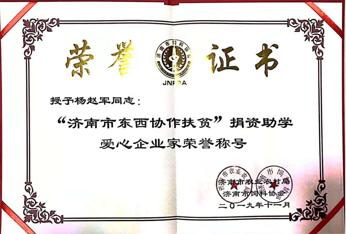 ? ? ? 熱烈祝賀公司董事長楊趙軍先生被授予“濟南市東西協作扶貧”捐資助學愛心企業家榮譽稱號!
