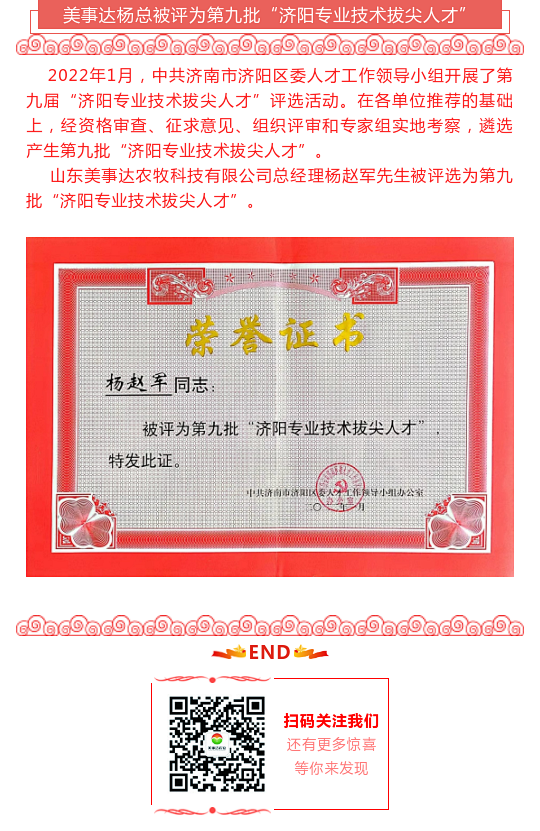美事達楊總被評為第九批“濟陽專業(yè)技術(shù)拔尖人才”