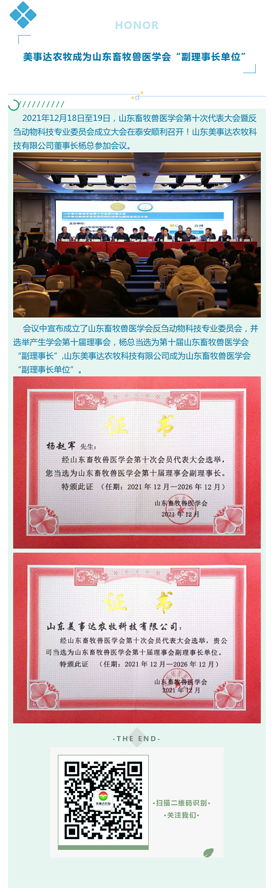 美事達農牧成為山東畜牧獸醫學會“副理事長單位”