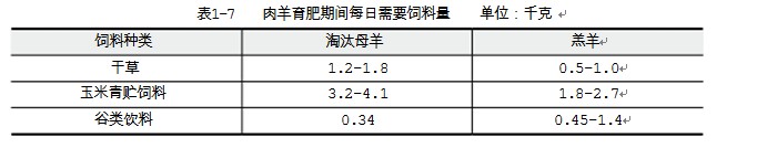 羊的育肥就是應用飼養和管理技術,用盡可能少的飼料獲得盡可能高的日增重,生產出大量優質 的羊肉。因此,要快速育肥、縮短出欄時間、增加經濟效益、掌握科學的育肥技術十分關鍵。育肥期的成年羊已經停止生長發育,增重往往是脂肪的沉積,因此需要大量能量,其營養需要除 熱能外,其他營養成分略低于羔羊。一般品種的成年羊育肥時,達到相同體重的熱能需要高于肉用品 種10%左右,加強成年羊育肥能夠在較短時間內獲得較高的日增重,從而降低單位增重的飼料和勞動 力消耗。羊只在育肥過程中的品質發生很大變化,隨著膘情的改善,羊肉中的水分相對減少,脂肪含 量增加,熱量增加而蛋白質含量相對有所下降。對成年羊不同育肥階段肉和脂肪含量變化的比較研究 證明,成年羊的增重幾乎全是脂肪(見表1-6)。